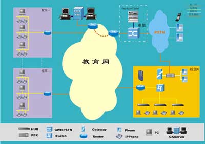 国家教委的“校校通”工程使得国内的校园网的建设得到了飞速的发展,但是其网络本身的利用率却不到50%,大量的校园网资源被闲置,而教育系统内部的通讯费用又居高不下,在数据网上走语音已成为一种资源优化的方式,在既不影响原有的建网意义与功能,又可开发新的网络应用内容,提高了校园网的使用率,降低了学校的运营成本。