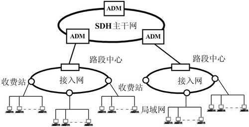 高速公路主干网主要为上传业务和跨本地网业务提供高速信息通道,具有传输容量大、距离跨度大、电路质量要求高、重要性强等特点,现有主干网主要基于同步数字序列(SDH)技术。高速公路通信系统接入网是SDH主干网的延伸,是路段的通信平台,适合高速公路通信网的多业务接入。位于低层的是采用常见的以太网方式的计算机局域网,由各收费站的计算机、服务器、路由器所组成。接入网在整个高速公路通信网建设中占50%以上的投资,而且接入网直接面对广大的用户和各种应用系统,能完成语音数据图像等综合业务。目前,接入网基本采用了OLT-ONU接入方式,在路段通信分中心设置OLT,在各收费站、服务区配置ONU。收费和监控系统的各种数据就近接入ONU,整合传送到分中心的OLT,OLT接到ADM接口,连到SDH主干网。这种接入方式接口丰富,虽以2M数字接口为基本单元,但经内部的各类接口板,拆分为2/4线音频话路接口、子速率接口、ISDN 2B+D、ISDN 30B+D等速率固定的接口。