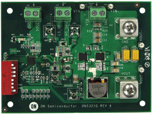 The ONS321B12VGEVB evaluation board is a single phase buck converter designed such that it can accommodate up to 4SO8IC/SO8FL parts or 2u8FL/WDFN8 parts or 4 DPAK parts and, depending on the type of application and necessity, any combination of the above packages can also be implemented by the customer. The ONS321B12VGEVB evaluation board is designed to operate with an input voltage ranging from 8-19V, and to provide an output voltage ranging from 0.8-1.4V for load currents of up to 25A. The ONS321B12VGEVB comes with a 12V driver, but it can be modified to work with our 5V drivers, but only one can be used at a time. The ONS321B12VGEVB evaluation board has a number of test points that can be used to evaluate its performance in any given application.
