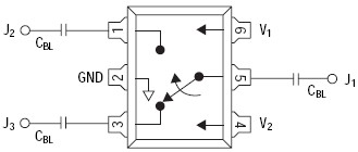The SKY13268-344LF is a monolithic SPDT switch, fabricated using Skyworks proprietary GaAs pHEMTs as the switching elements. This wideband switch operates with RF signals from 300 kHz to 3 GHz. The RF signal paths within the SKY13268-344LF are fully bilateral. Ports J2 and J3, RF input/ output terminals are reflective. Switching is controlled via two control voltage inputs, which are compatible with CMOS logic levels. Depending upon the logic voltage level applied to the control voltage pin, the common RF pin, J1, is connected to one of two switched RF pins (J2 or J3) via a low insertion loss path, while the path between the RF common and the other RF pin is in its high-isolation state. DC power consumption is very low, 100 μA maximum with control voltage of 3 V. The switch can operate over the temperature range of -40 °C to +95 °C.