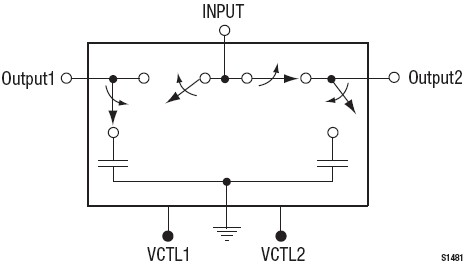 The SKY13366-378LF is a pHEMT GaAs FET I/C switch. The switch may be used in transmit/receive applications by connecting the RF common port (INPUT, pin 5) to either the OUTPUT1 or OUTPUT2 port (pin 1 or 3, respectively) using a low loss path (i.e., a positive voltage applied to either VCTL1 or VCTL2 pins). The switch is “reflective short” on the isolated port. The switch is manufactured in a compact, 1 x 1 mm, 6-pin exposed pad plastic Micro Leadframe Package Dual (MLPD) package.