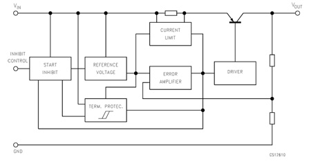 A Shutdown logic control function is available (pin 5, TTL compatible). This means that when the device is used as a local regulator, it is possible to put a part of the board in standby, decreasing the total power consumption. It requires only a 2.2 µF capacitor for stability allowing space and cost saving