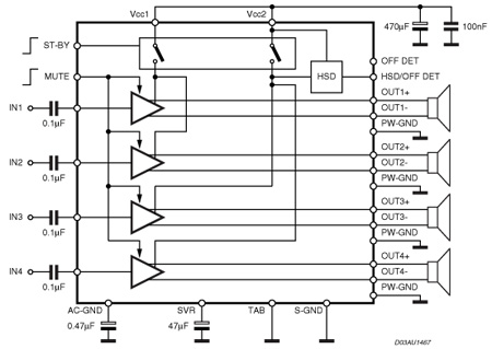 | DS5524 : 4 x 50 W MOSFET quad bridge power amplifier |