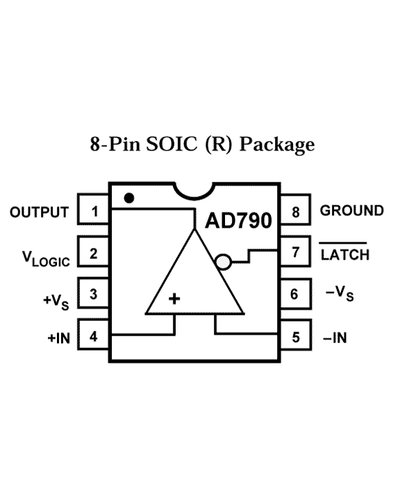 The device is fabricated using Analog Devices' Complementary Bipolar (CB) process - which gives the AD790's combination of fast response time and outstanding input voltage resolution (1mV max). To preserve its speed and accuracy, the AD790 incorporates a "low glitch" output stage that does not exhibit the large current spikes normally found in TTL or CMOS output stages. Its controlled switching reduces power supply disturbances that can feed back to the input and cause undesired oscillations. The AD790 also has a latching function which makes it suitable for applications requiring synchronous operation.