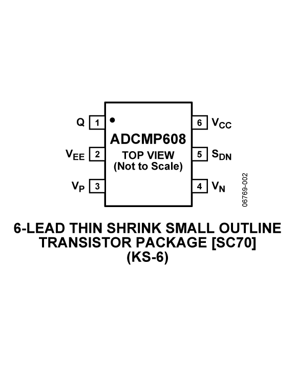 ADCMP608采用6引脚小型SC70封装,提供单端输出和关断引脚。