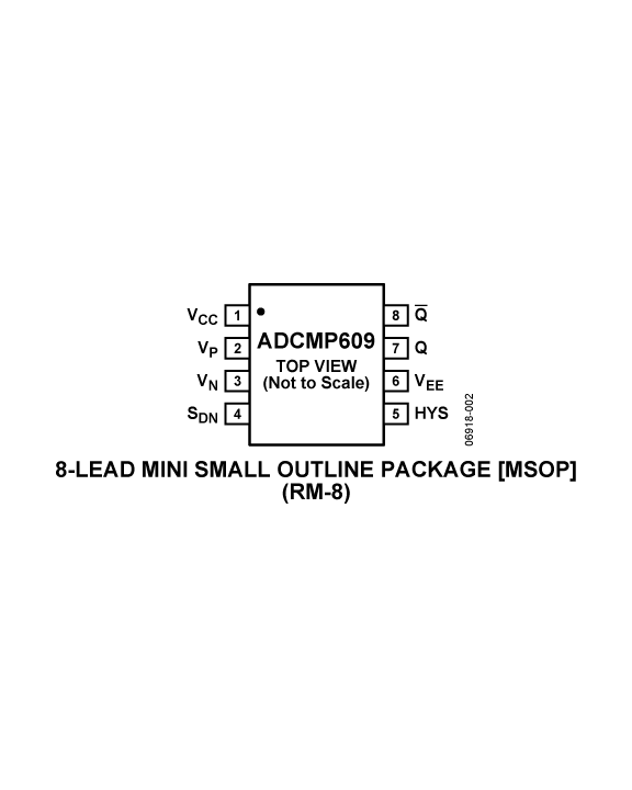 ADCMP609采用8引脚MSOP封装,提供关断引脚和迟滞控制特性。