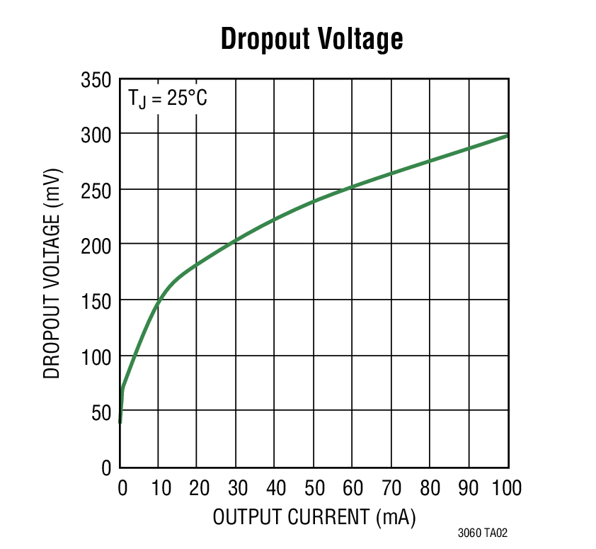 LT3060 稳压器利用低 ESR 陶瓷输出电容器优化了稳定性和瞬态响应。该稳压器不像其他稳压器所常见的那样需要额外的 ESR。