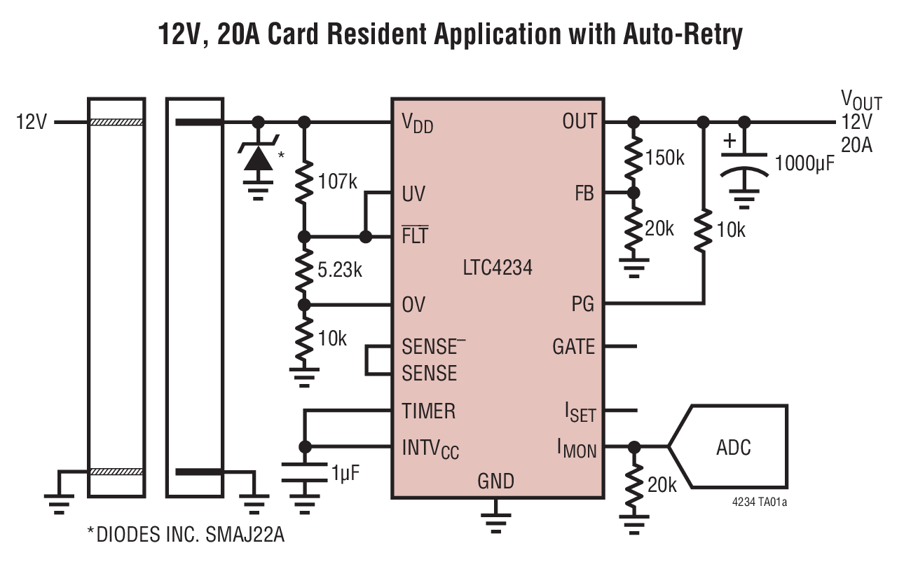 | DC2116A-A | LTC4234 Demo Board: 20A Guaranteed SOA Hot Swap Controller | $75.00 |