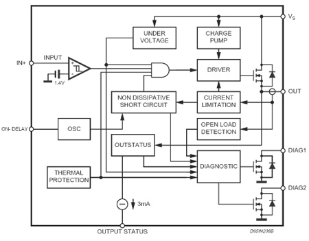 An internal clamping diode enables the fast demagnetization of inductive loads. Diagnostics for CPU feedback and extensive use of electrical protection make this device extremely rugged and specially suitable for industrial automation applications