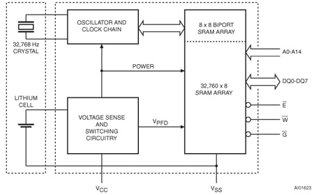 The M48T35AV is a non-volatile pin and function equivalent to any JEDEC standard 32 Kb x 8 SRAM. It also easily fits into many ROM, EPROM, and EEPROM sockets, providing the non-volatility of PROMs without any requirement for special WRITE timing or limitations on the number of WRITEs that can be performed.