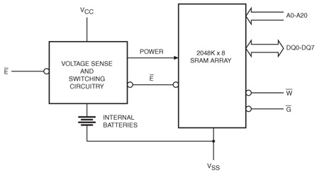 The ZEROPOWER RAM replaces industry standard SRAMs. It provides the non-volatility of PROMs without any requirement for special WRITE timing or limitations on the number of WRITEs that can be performed