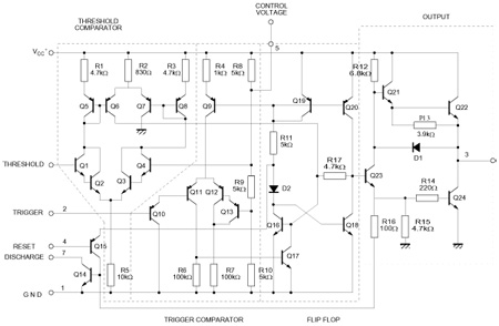The NE555, SA555, and SE555 monolithic timing circuits are highly stable controllers capable of producing accurate time delays or oscillation. In the time delay mode of operation, the time is precisely controlled by one external resistor and capacitor. For a stable operation as an oscillator, the free running frequency and the duty cycle are both accurately controlled with two external resistors and one capacitor.