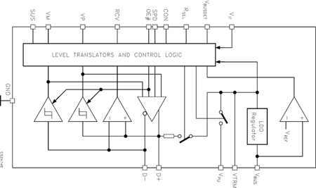 It supports both full-speed (12Mbps) and lowspeed (1.5Mbps) operation. It is also designed to operate down to 1.6V so that it is compatible with lower system voltages of most portable systems, which include PDAs, MP3 Player and Cell phones